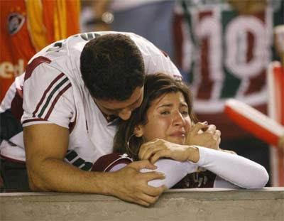 Torcedora chora no Maracanã após o Fluminense perder o título da Libertadores para a LDU. Rafael Andrade/Folha Imagem.