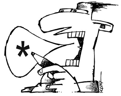 Se faz isso com o traço e a troça é capaz de exercer tais magias com as palavras no seu escavado, onde as frases são curtas mas de profundas reverberações semânticas. Um pingo no espaço que engorda, Sancho Pança, Aníbal Khoury, ou quase se estica em distúrbio glandular, Don Quixote, o Magro do Henfil, nunca jamais o Tadeu França. Riscos e rasgos a partir de hoje em exposição dos cartuns no Bar Ocidente, um dos raros espaços culturais não pertencentes à loba romana do mecenato oficial. Artes do Solda, talento que dá liga.